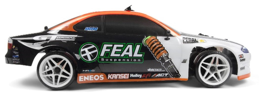 To celebrate this incredible achievement, HPI is introducing an all-new, officially licensed HPI Racing Nissan S15 Widebody 200mm Bodyshell, recreated with the Feal Suspension Race Team's striking 2023/2024 livery in 1:10th scale. This highly detailed Nissan Silvia S15 body is paired with a full set of brand-new Kansei Astro Wheels in white, each wrapped in HPI Racing T-DRIFT Slick drift tires, so you can start sliding as soon as you hit the throttle.