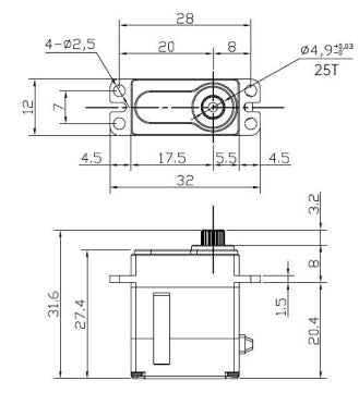 With up to 179 oz of torque, this brushless micro servo packs one heck of a punch. It's smart too, which allows you to program this servo for either standard servo or winch duty with our optional programmer.High Torque High Speed Brushless Servo / Winch Fully Programmable, REEFS LINK required for Programming Magnetic Angle Sensor Pulse Width Modulation Control Temperature Rating: -15C ~ +70C Voltage 6-8.4V/ Internal: Metal & Steel Gears CNC Aluminum Casing; Metal & Steel Gears; Bearing Type: 2BB Unload Current: 150/180/240/300mA @ 4.8V/6.0V/7.4V/8.4V; Load Current:1.6/2.0/2.2/2.4A @ 4.8V/6.0V/7.4V/8.4V Dimension: (LWH)Weight: .90 x .47 x 1.08 in/23 x 12 x 27.5 mm .74oz / 21g Torque: 135 oz-in@ 6.0V / 159 oz-in@ 7.4V / 179 oz-in@ 8.4V Speed:.09 sec @ 6.0V / .07 sec @ 7.4V / .06 sec @ 8.4V
